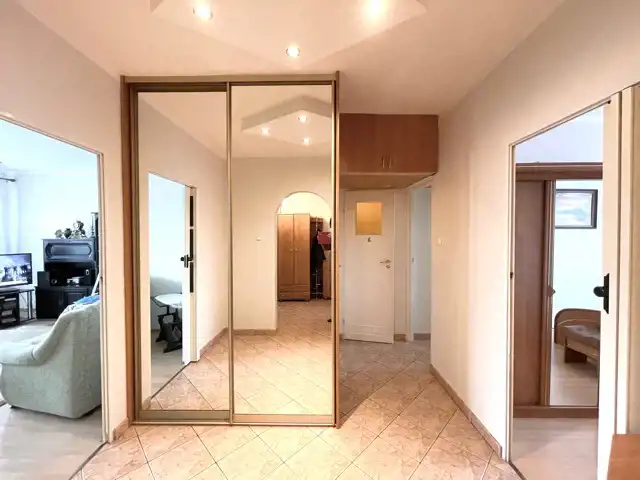 O pow.63,58m2., duża loggia, 3pokoje, 2 funkcjonalne przedpokoje, meble wolnostojące do dalszych ustaleń, stała zabudowa zostaje w cenie, ściany i sufity świeżo odmalowane, pachnące.