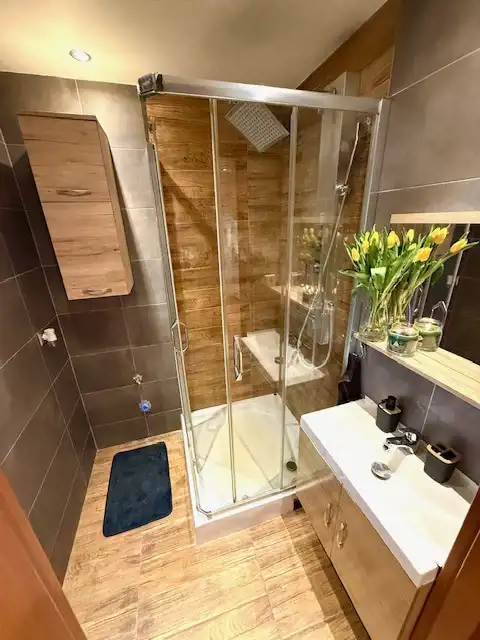 ŁAZIENKA o pow. 3m2. kabina prysznicowa, szafka pod umywalką, umywalka, oświetlenie, lustro,
