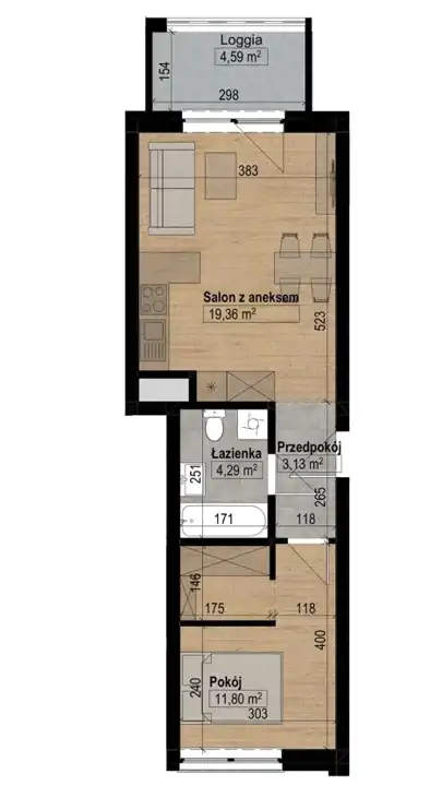 - Charakterystyka mieszkania 39.74 m2, 2 pokoje