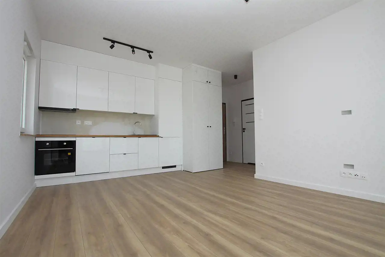 Mieszkanie z nowym, nie używanym wyposażeniem: w aneksie kuchennym meble kuchenne w zabudowie z płytą indukcyjną, piekarnikiem elektrycznym, wyciągiem i zmywarką. W sypialni - zabudowana szafa z wyprowadzeniem na telewizor.
