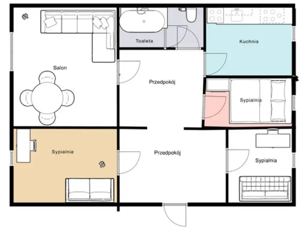- Charakterystyka mieszkania 74.13 m2, 4 pokoje