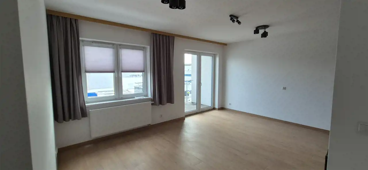 Mieszkanie 40,50 m2 z dużym balkonem na drugim piętrze w bloku.