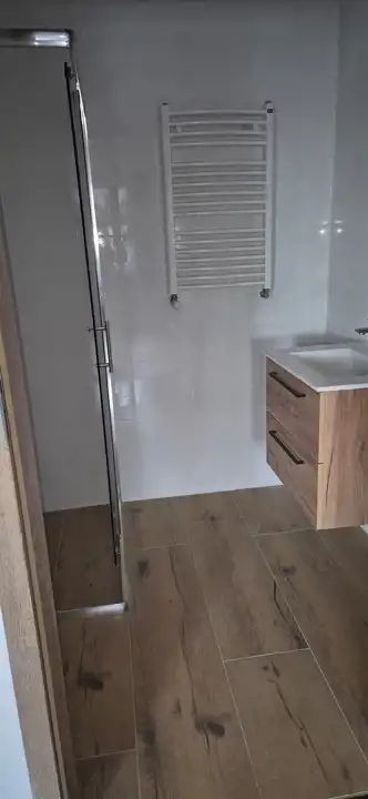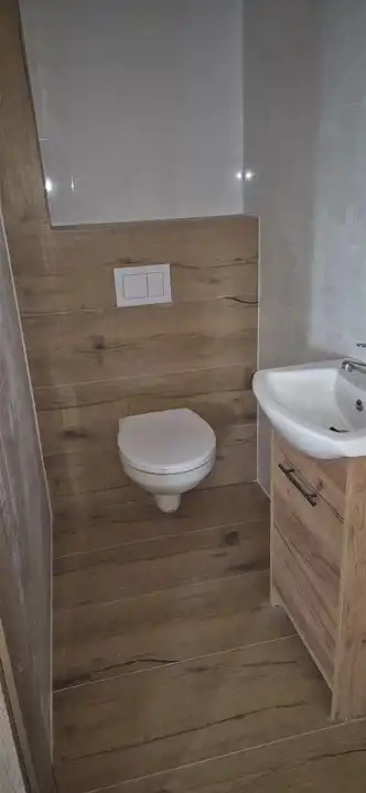 W łazience i wc położone kafle, wstawiona kabina prysznicowa i instalacyjna , umywalka wszystko podłączone , wc z instalacją sanitarną gotową do użytku.