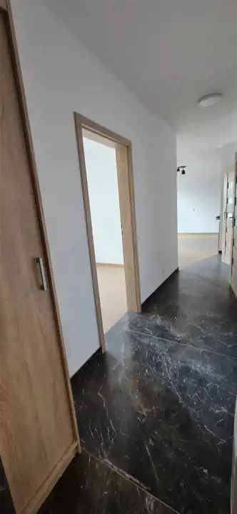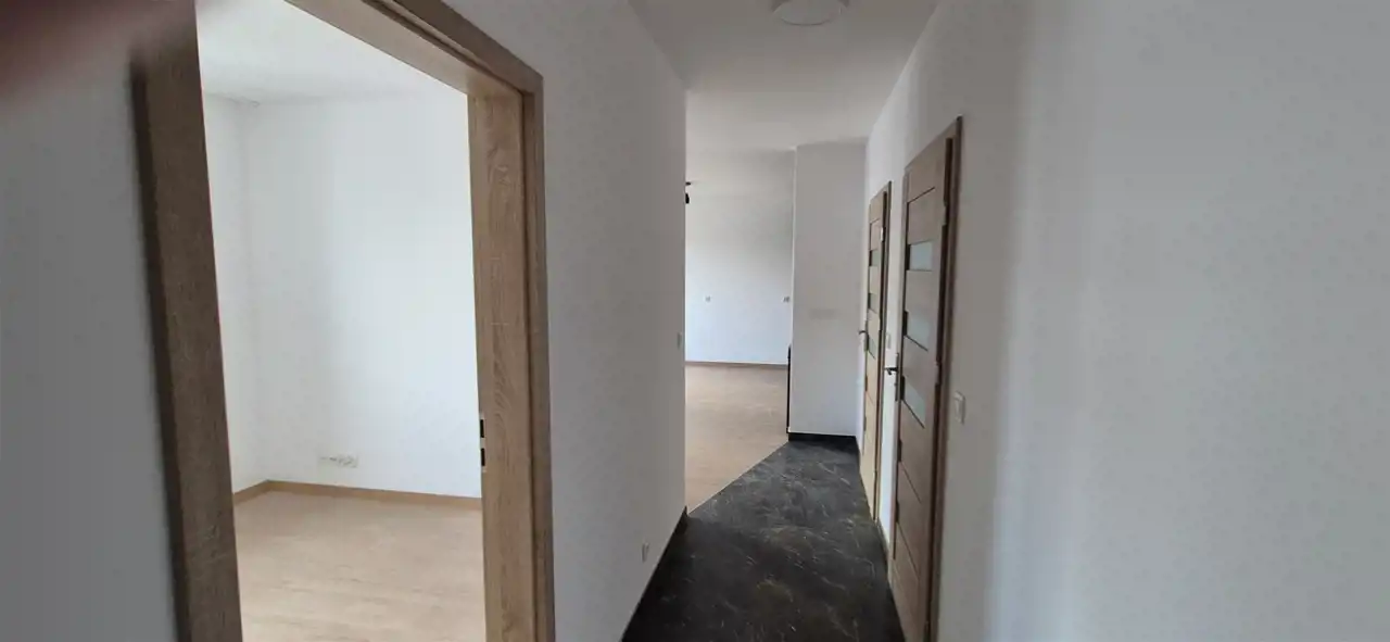 W korytarzu mieszkania położone są kafle, zamontowana szafa , w pokojach położone panele ,