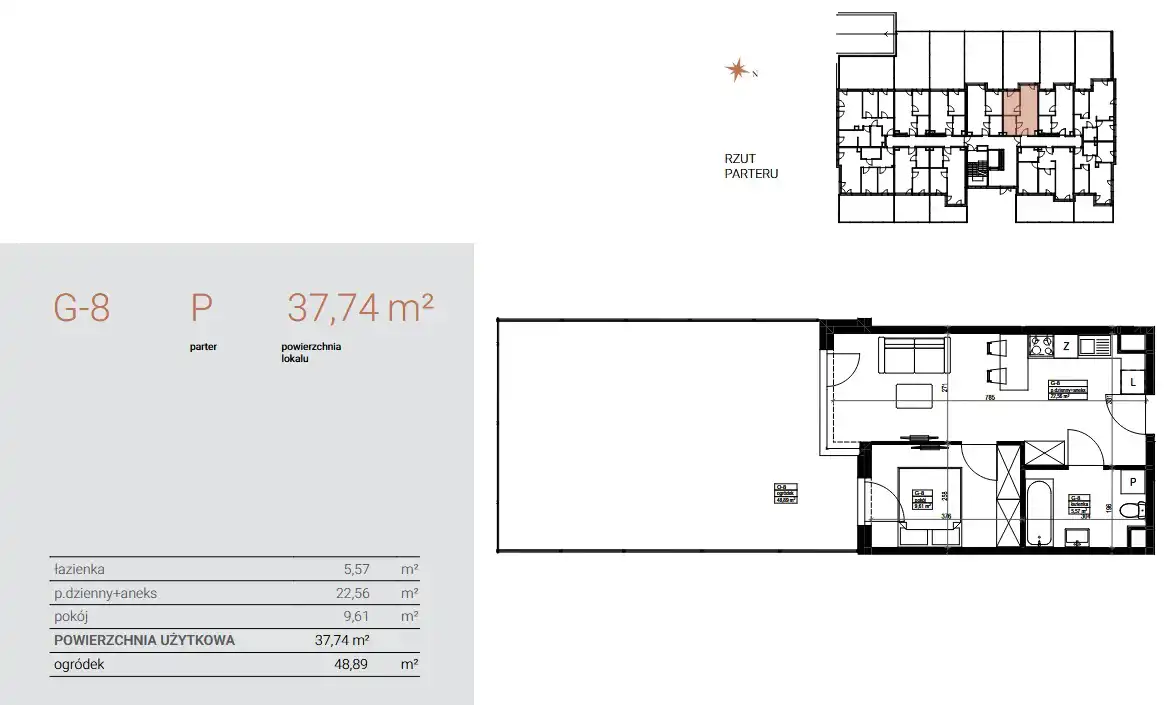 - Charakterystyka mieszkania 37.74 m2, 2 pokoje