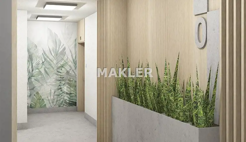 Wewnątrz budynku zadbano o każdy szczegół. Stylowe wykończenie części wspólnych z użyciem elementów dekoracyjnych w postaci motywów roślinnych i drewnianych nadają niepowtarzalnego, ciepłego i przyjaznego charakteru.