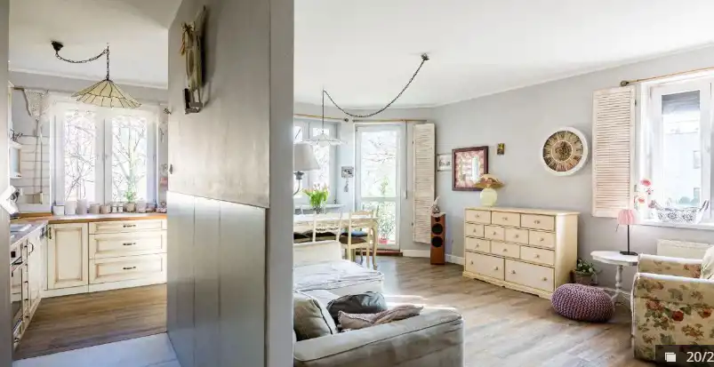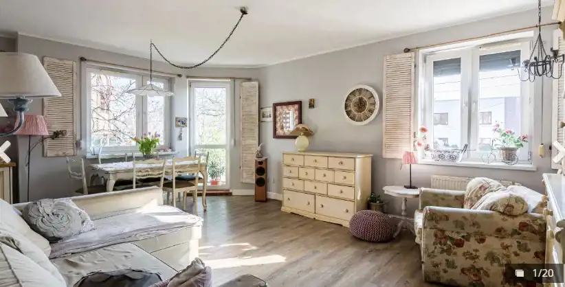 Dom w którym znajduje się mieszkanie jest bardzo kameralny, na klatce tylko cztery lokale. Mieszkanie posiada duży balkon pięknie obrośnięty bluszczem i rolety zewnętrzne.