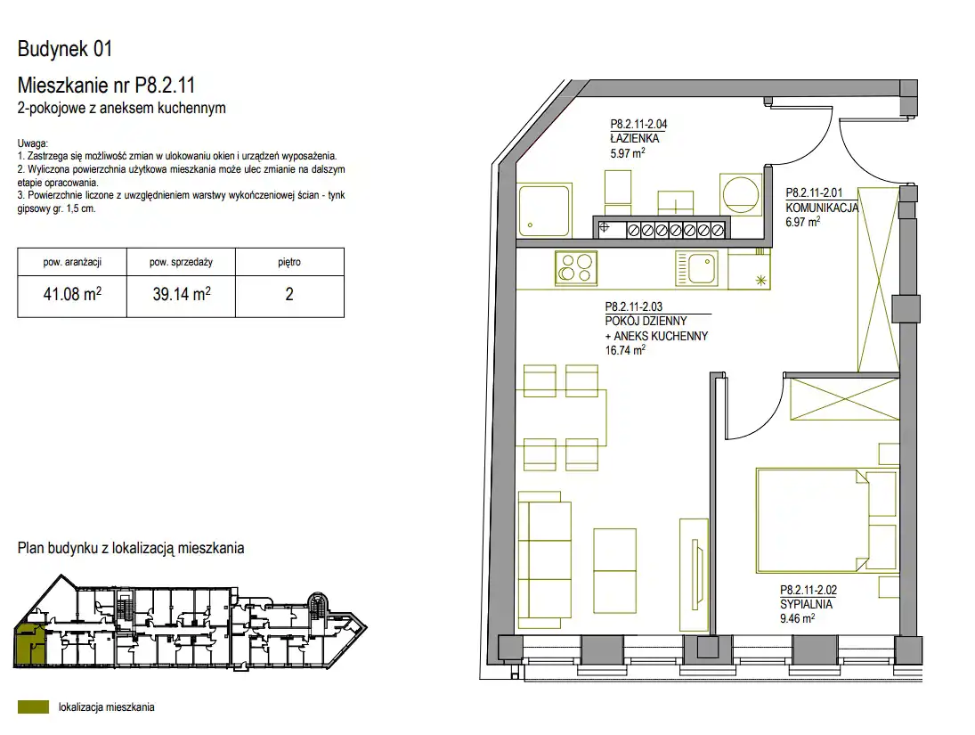 Prezentowane mieszkanie znajduje się na 2. piętrze i posiada 39,14 m2.