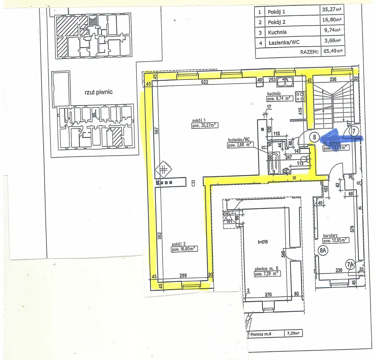 - Charakterystyka mieszkania 65.49 m2, 2 pokoje