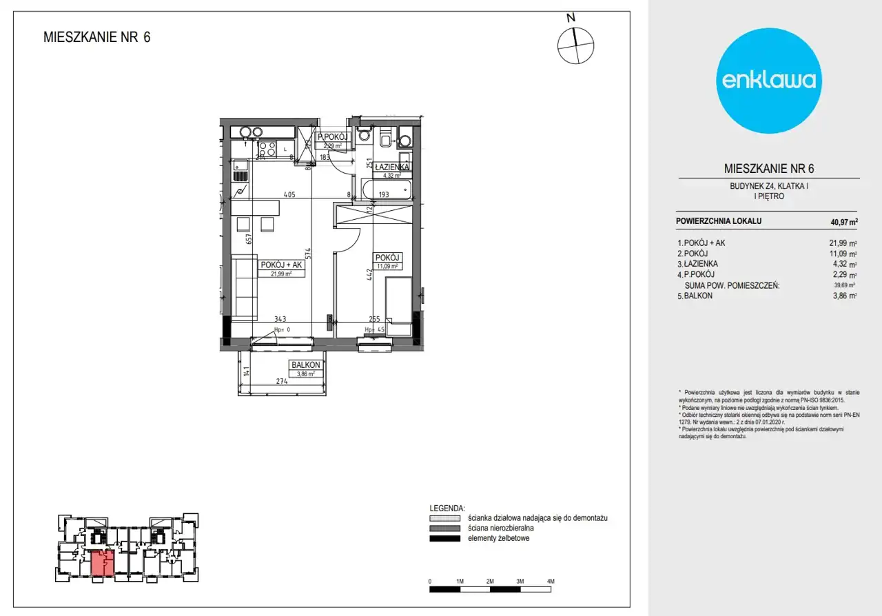 - Charakterystyka mieszkania 40.62 m2, 2 pokoje