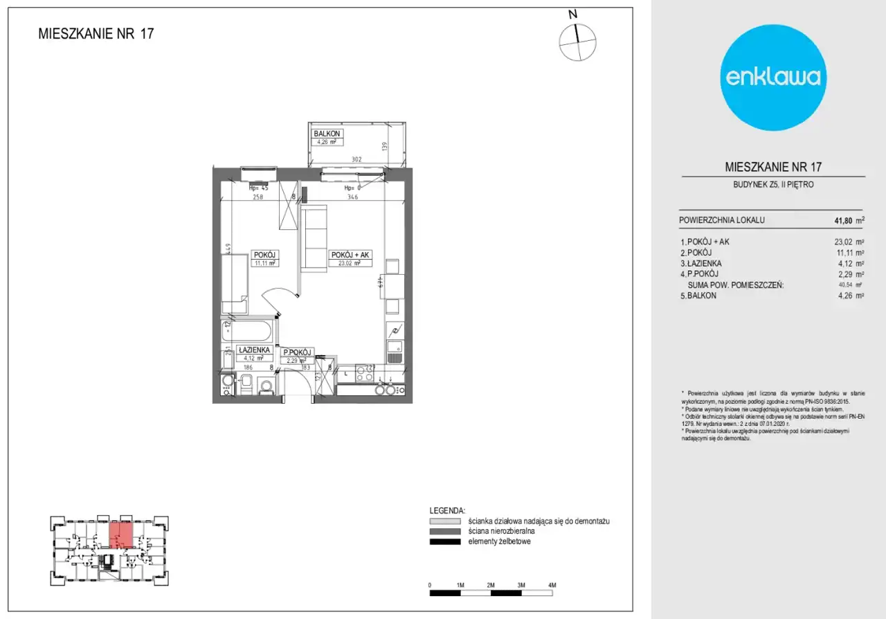 - Charakterystyka mieszkania 41.53 m2, 2 pokoje