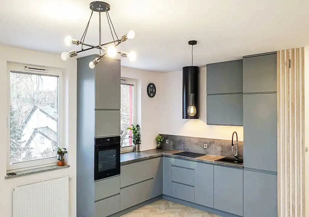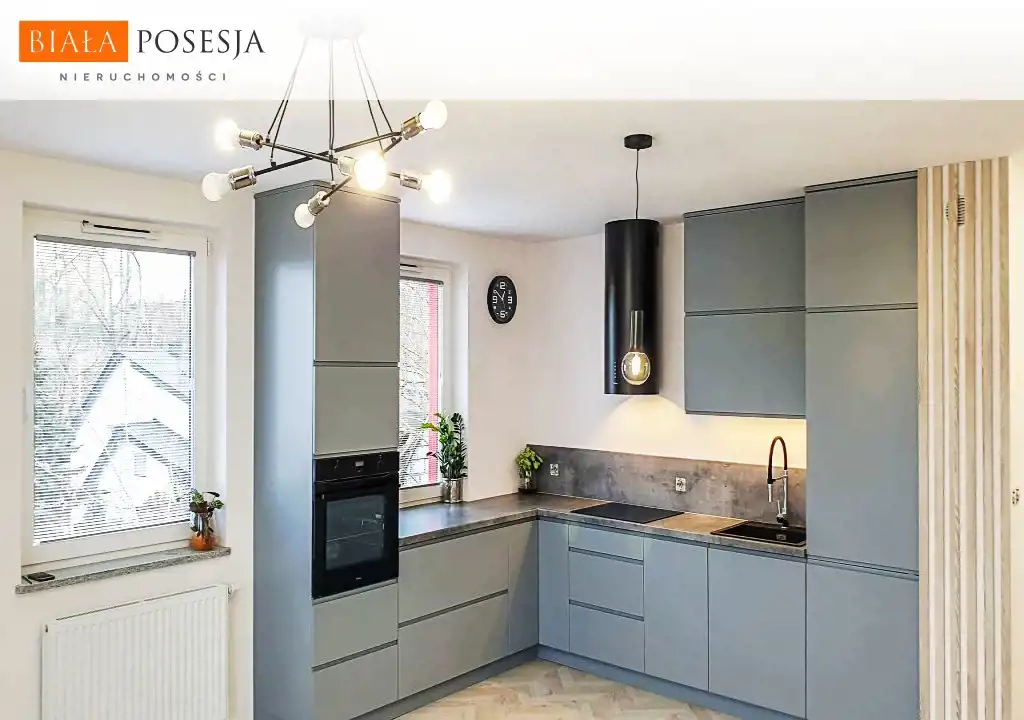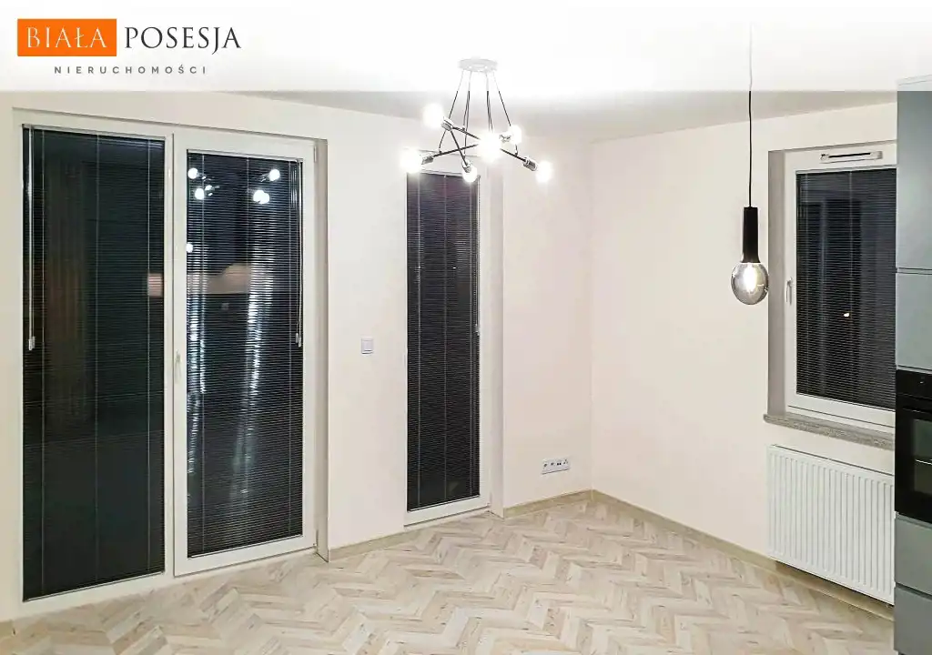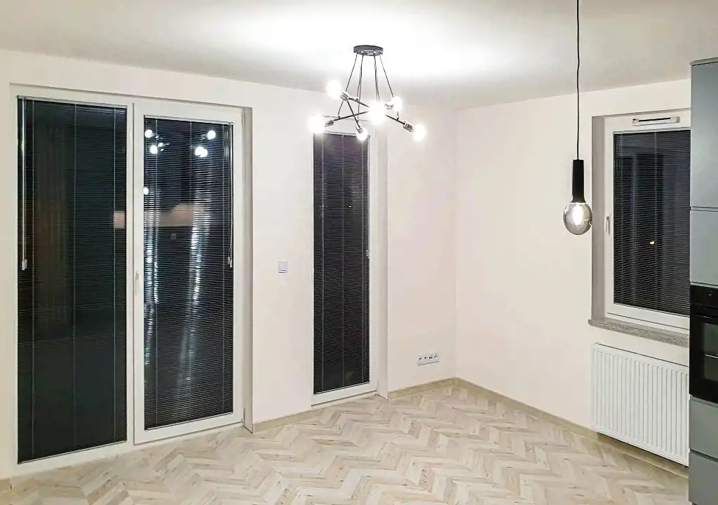 W każdym oknie (PCV trzyszybowe) zamontowano drewniane rolety wewnętrzne. Kuchnia pod wymiar jest w pełni wyposażona w najwyższej jakości sprzęt AGD na gwarancji.