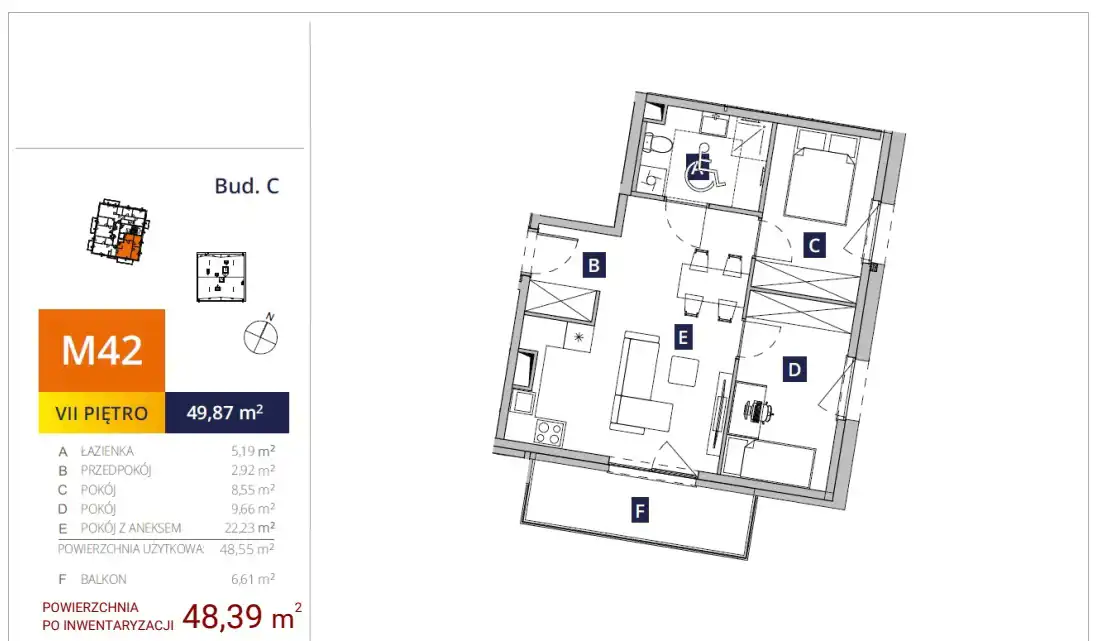 - Charakterystyka mieszkania 48.39 m2, 3 pokoje