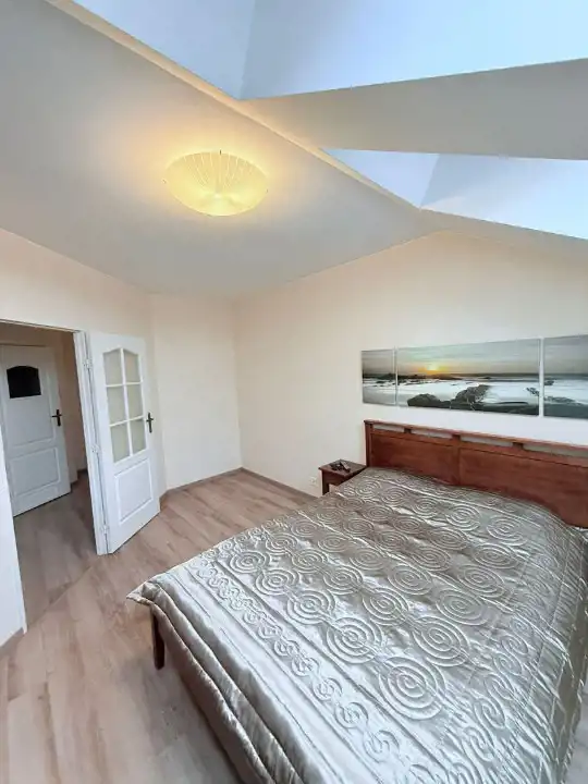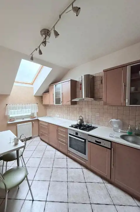 W sypialni i kuchni zastosowano okna dachowe Velux, które wprowadzają dodatkowe światło i tworzą przyjemny klimat wnętrza (w cenie robot do mycia okien).