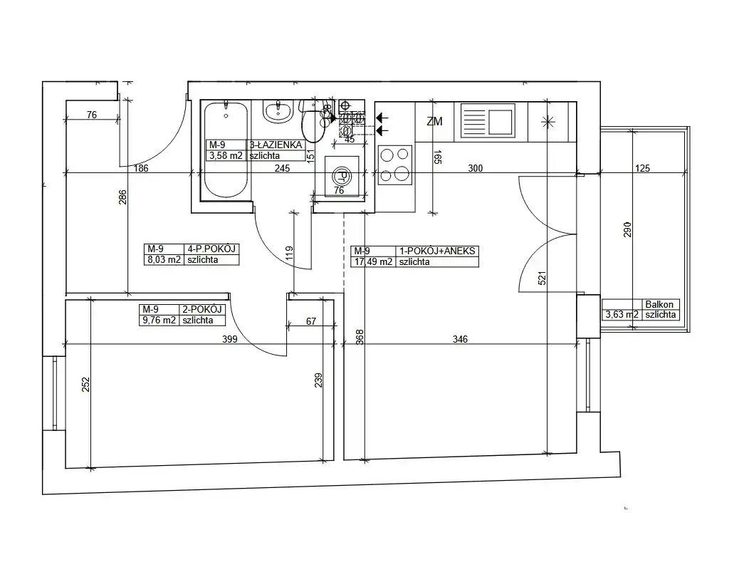 - Charakterystyka mieszkania 38.86 m2, 2 pokoje