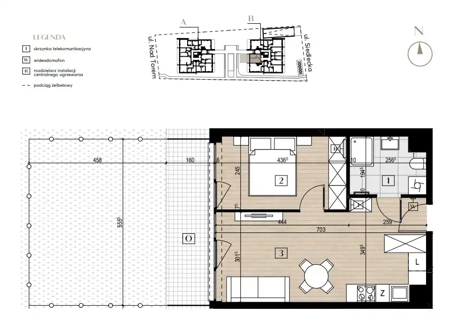 Inwestycja obejmuje dwa kameralne budynki, w których powstanie 37 apartamentów o zróżnicowanych powierzchniach od 36 m² do 103 m². Mieszkania na parterze będą wyposażone w prywatne ogródki, a lokale na wyższych kondygnacjach zyskają przestronne balkony lub tarasy z eleganckimi, szklanymi balustradami. Architektura wyróżnia się nowoczesnym designem i minimalistyczną estetyką.