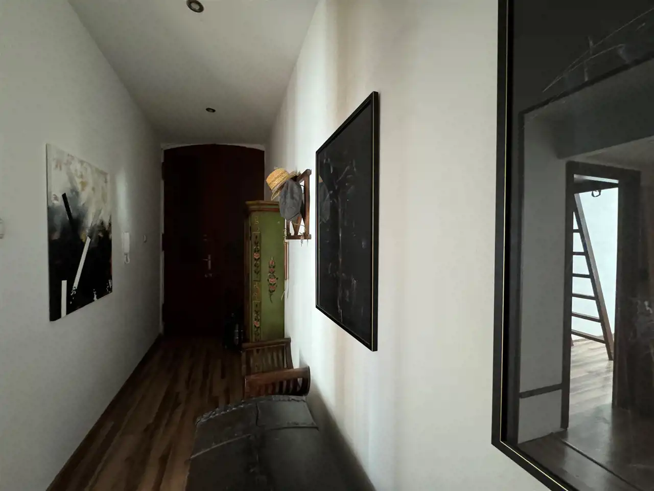 Na podłogach panele, ściany w gładzi (z możliwością odsłonięcia oryginalnej cegły)