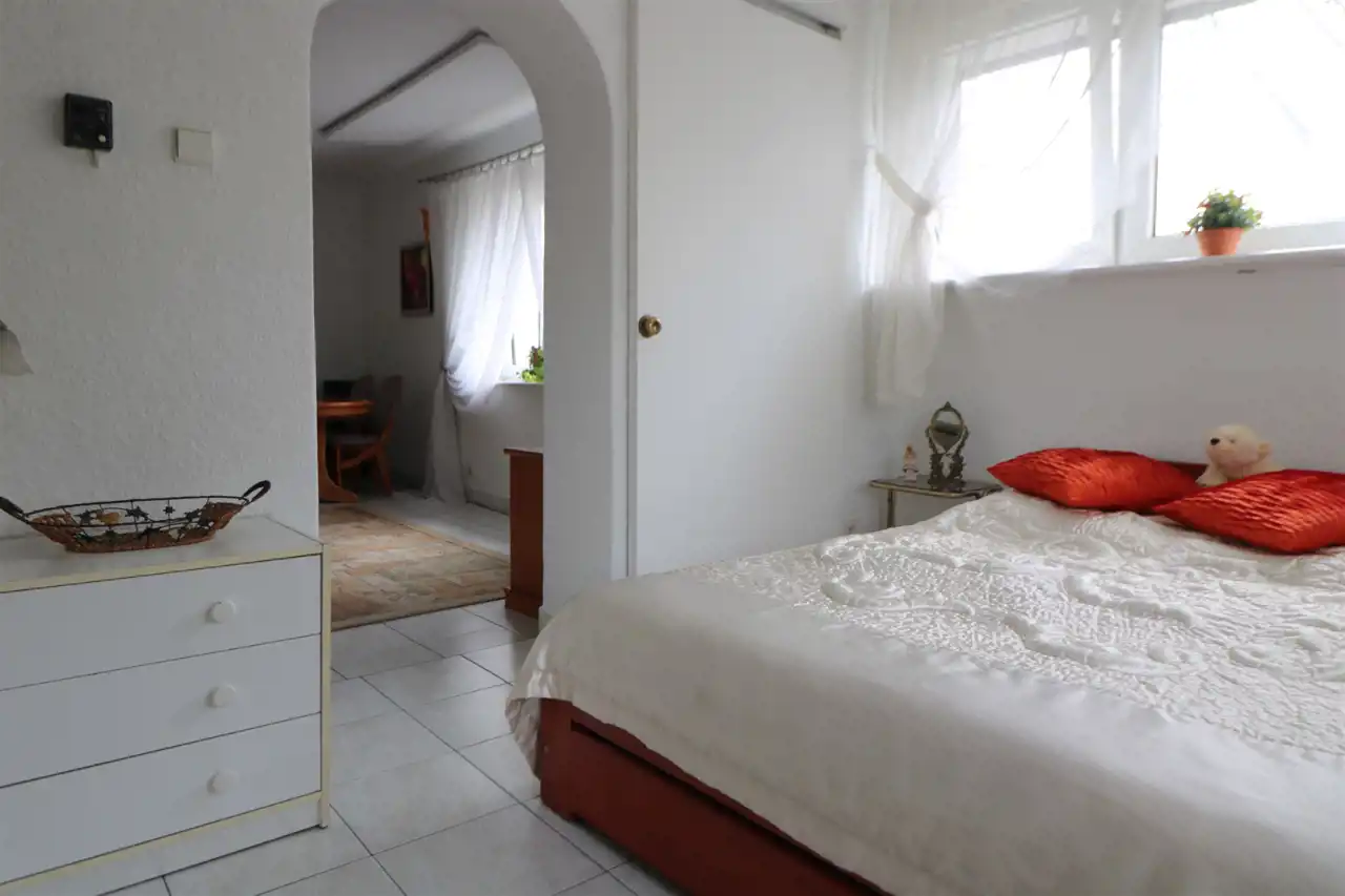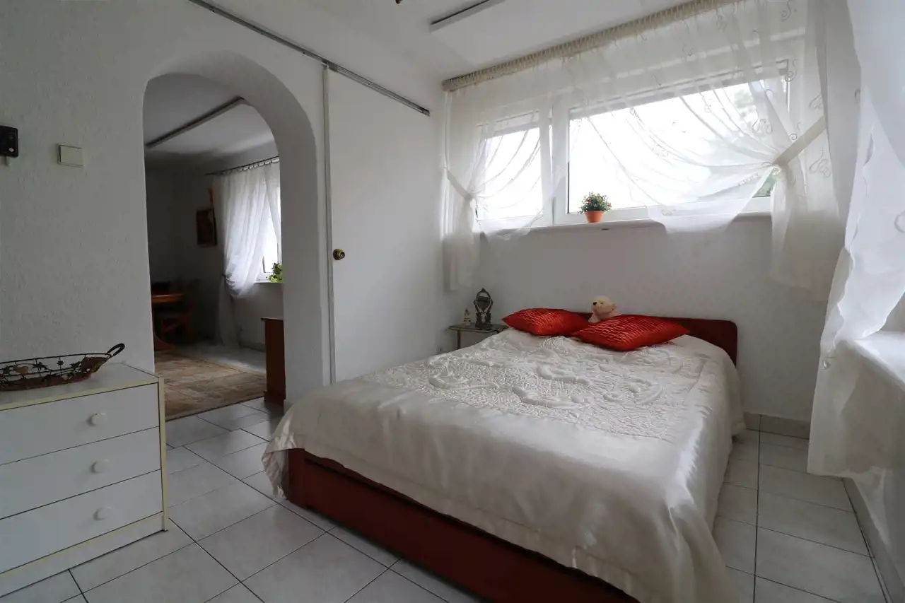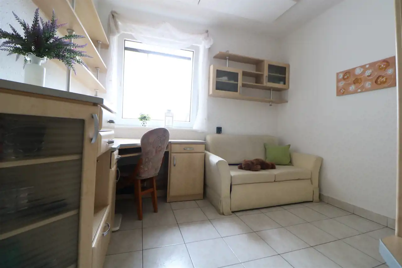 Polecam bardzo ładny lokal mieszkalny o pow. 71 m2 położony w domu dwurodzinnym na działce o pow. 686 m2 w spokojnej i cichej okolicy na osiedlu w Starym Fordonie. Do lokalu przynależy połowa działki. Lokal składa się z trzech pokoi o pow. 21 m2, 10,5 m2, 9 m2, kuchni 9,5 m2, przedpokoju oraz łazienka z WC. Okna PCV z roletami zewnętrznymi. Ogrzewanie elektryczne podłogowe oraz panele zamontowane na suficie, dodatkowe ogrzewanie ozdobnym piecykiem na drewno. Podgrzanie wody z bojlera przepływowego. Do dyspozycji duży taras na wyznaczonej części działki otoczony różnymi nasadzeniami.