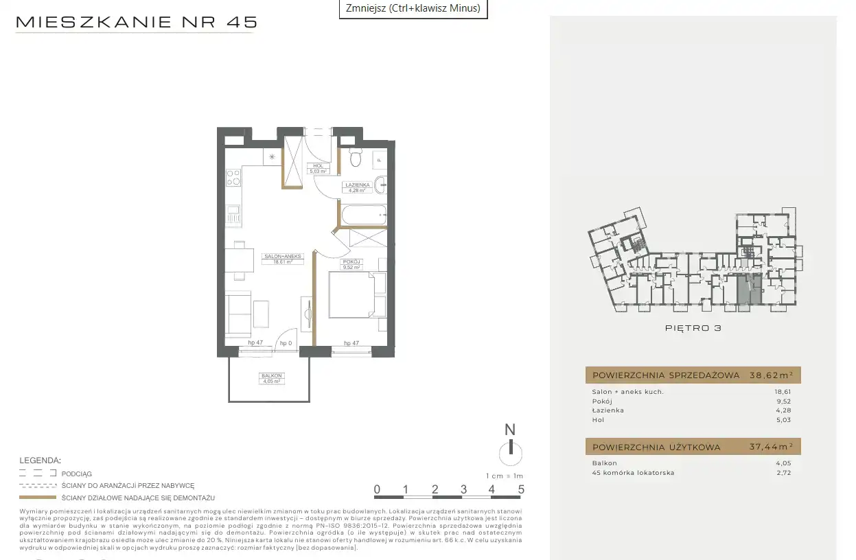 - Charakterystyka mieszkania 38.62 m2, 2 pokoje