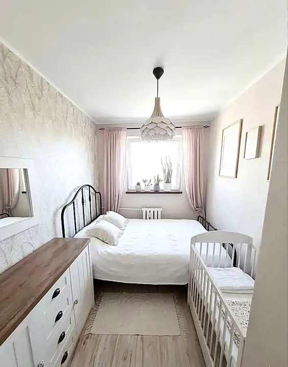 Ustawny pokój zapewniający komfortową przestrzeń do odpoczynku. -