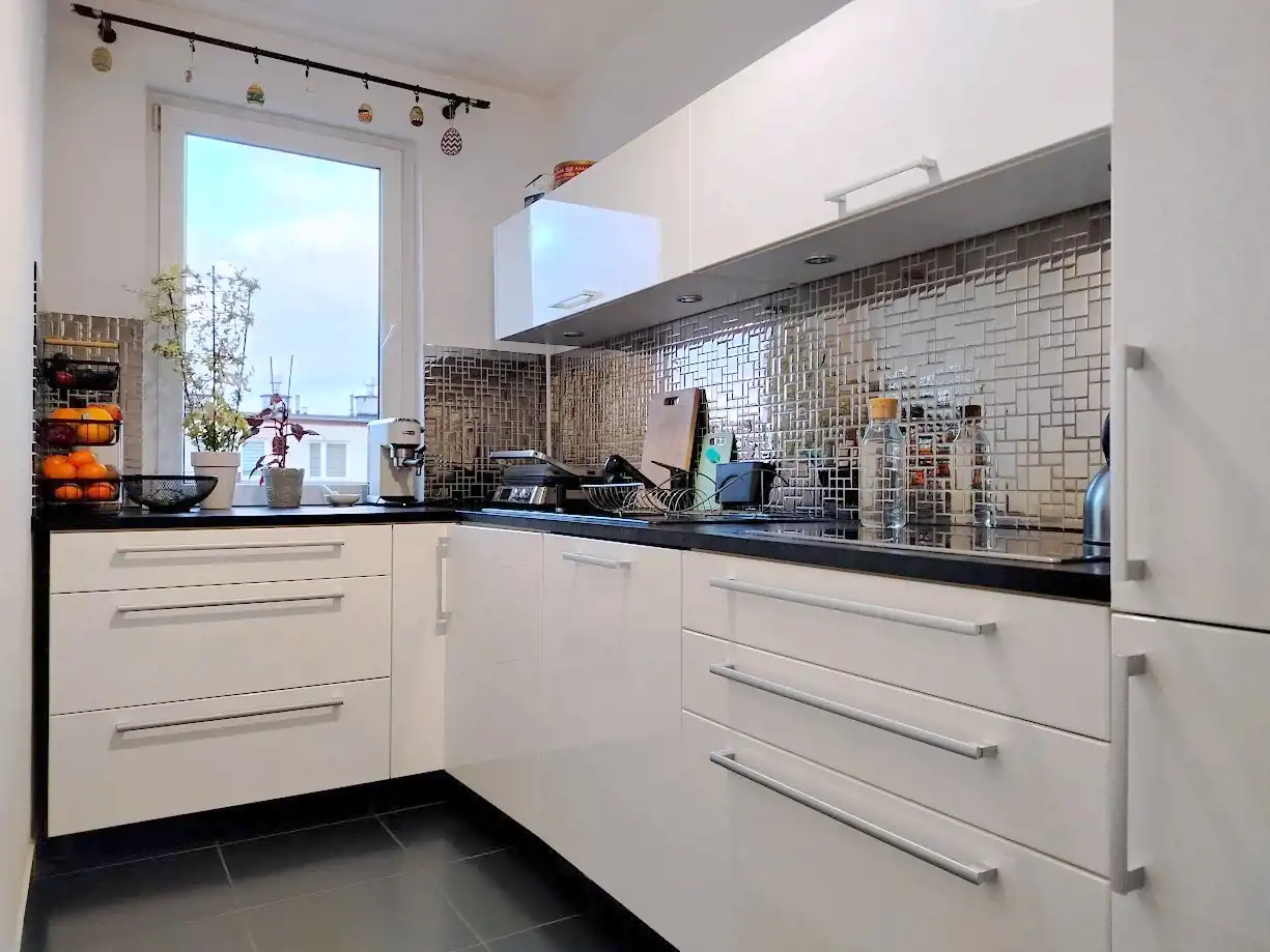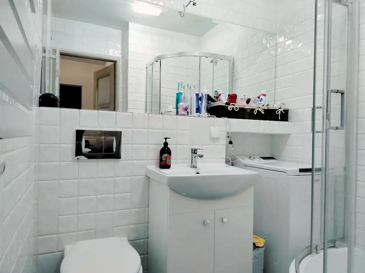 W mieszkaniu zostały wymienione instalacje elektryczne, okna PCV, na ścianach gładzie pomalowane na biało. Na podłogach panele, nowa stolarka wewnętrzna. Kuchnia z białą zabudową i sprzętami AGD: płytą grzewczą, piekarnikiem Bosch, zmywarką i dużą lodówko-zamrażarką pozostającymi w cenie mieszkania.