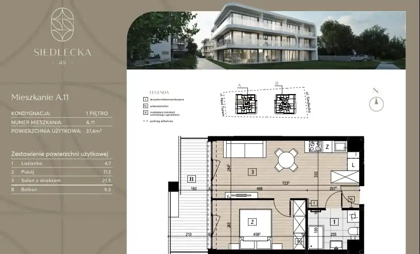 - Charakterystyka mieszkania 37.4 m2, 3 pokoje