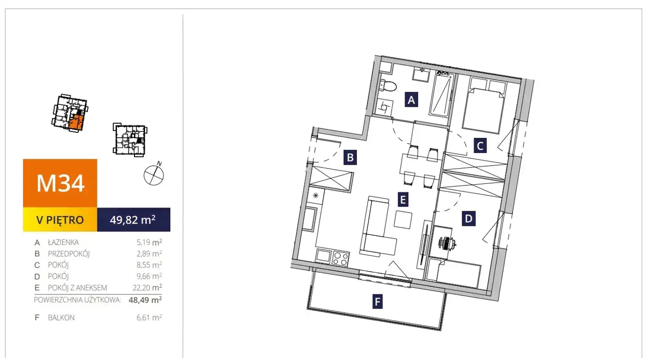 - Charakterystyka mieszkania 48.55 m2, 3 pokoje