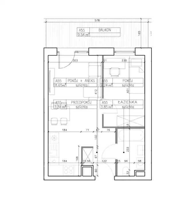 - Charakterystyka mieszkania 35.04 m2, 2 pokoje