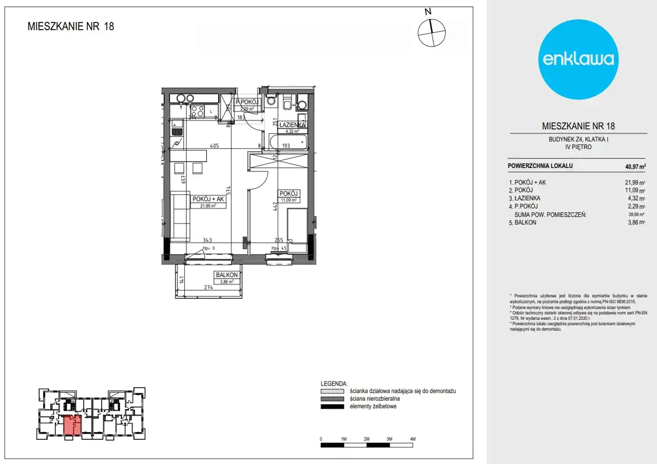 - Charakterystyka mieszkania 40.62 m2, 2 pokoje