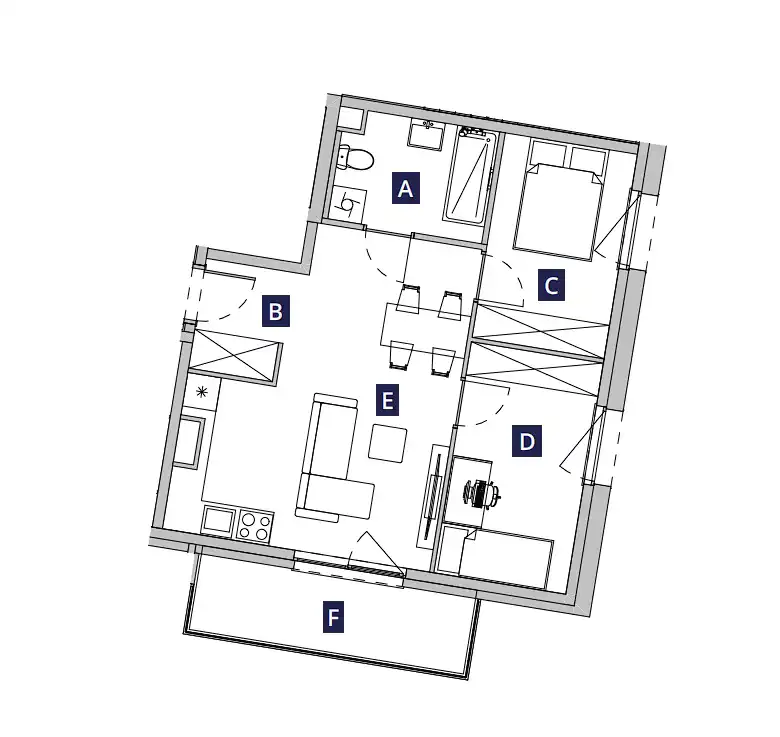 - Charakterystyka mieszkania 48.55 m2, 3 pokoje