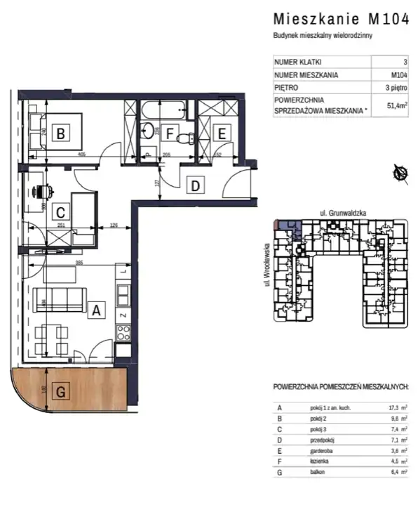- Charakterystyka mieszkania 51.4 m2, 3 pokoje