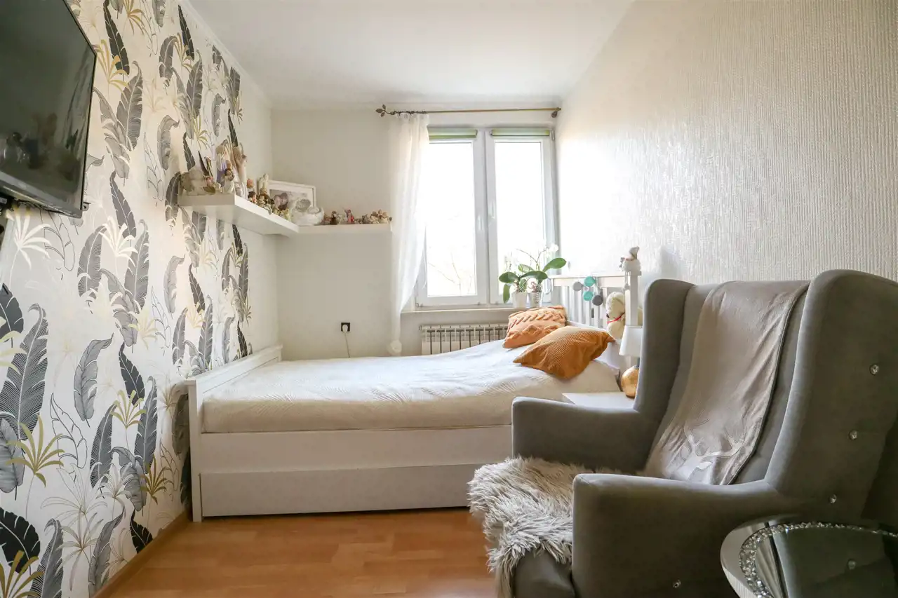 W skład lokalu wchodzą trzy ustawne sypialnie. Największa z nich, o powierzchni 15,5 m², idealnie nadaje się jako sypialnia dla rodziców, a dwie mniejsze, po 9 m² każda, mogą zostać przekształcone w pokoje dziecięce lub przestrzenie do pracy. Wszystkie sypialnie usytuowane są od strony zachodniej, co pozwala na dłuższy sen i przyjemne popołudniowe chwile.