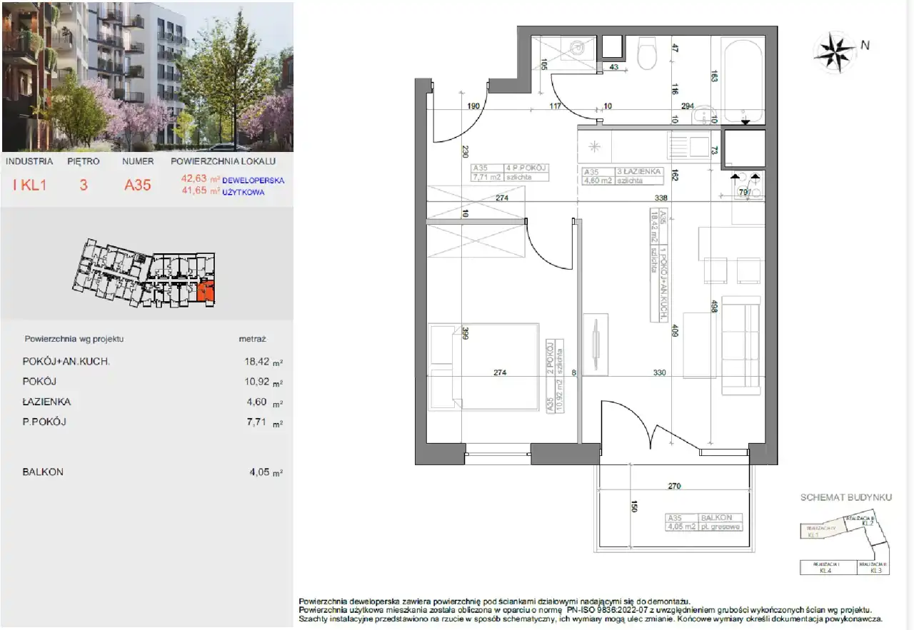 Mieszkanie o powierzchni 44,92 m2 składa się z:- salonu z aneksem kuchennym