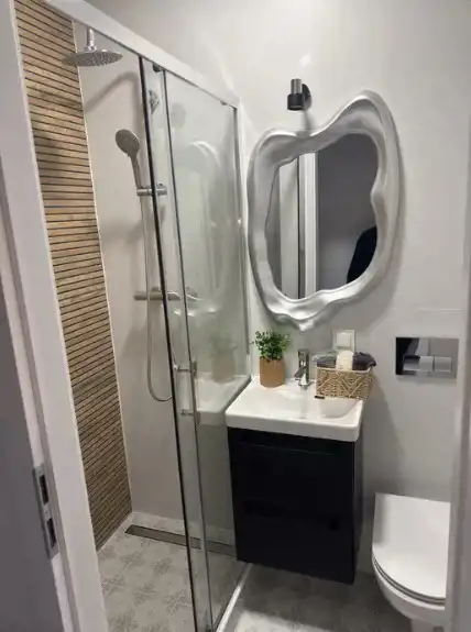 - łazienka z kabiną prysznicową, bądź wanna