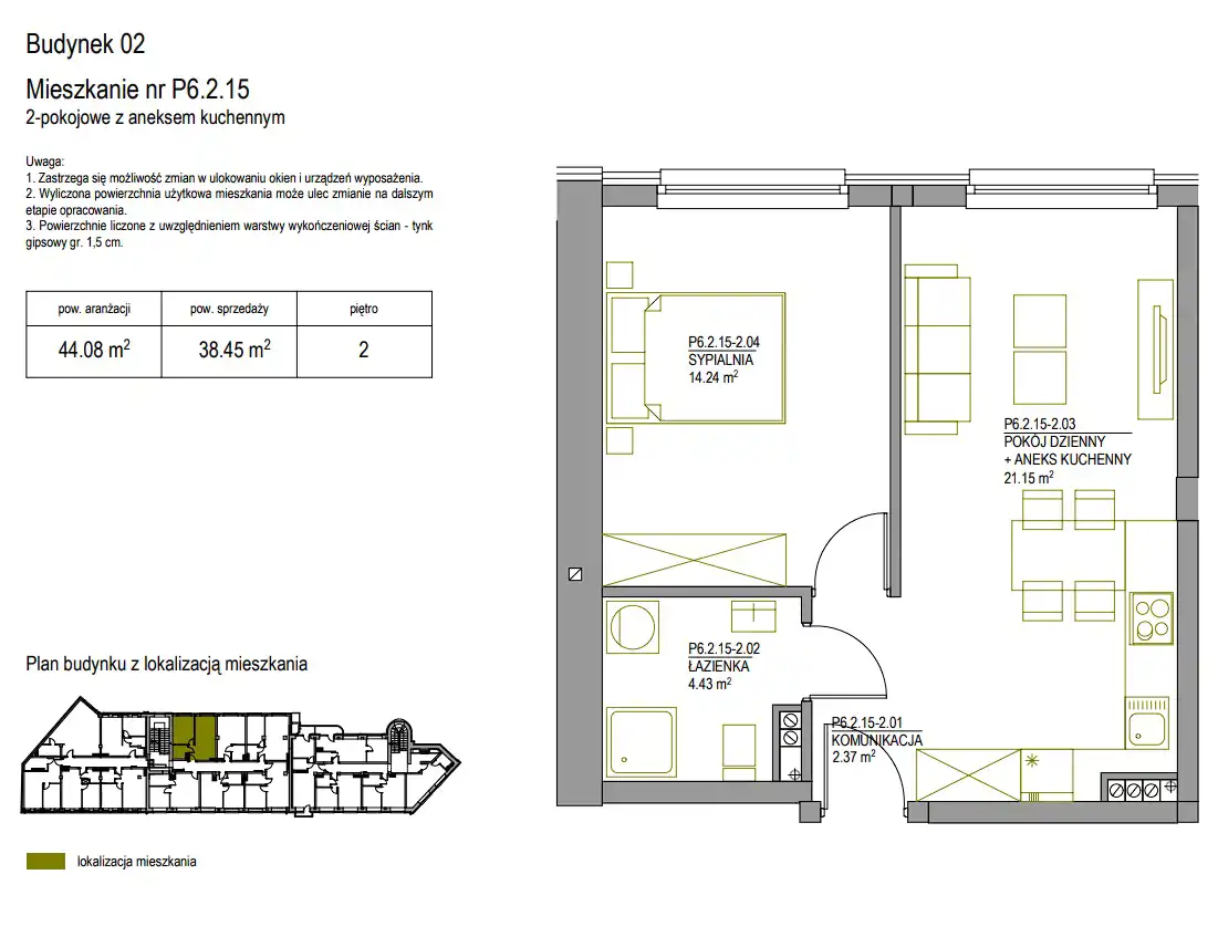 - Charakterystyka mieszkania 40.91 m2, 2 pokoje