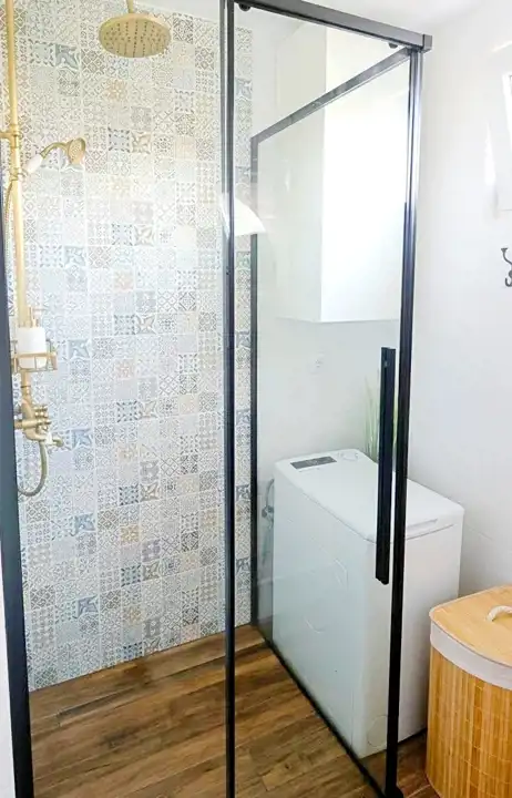Mieszkanie przeszło gruntowny remont, zmieniając pierwotny układ na znacznie bardziej funkcjonalny. Obecnie sercem domu jest otwarta strefa dzienna: