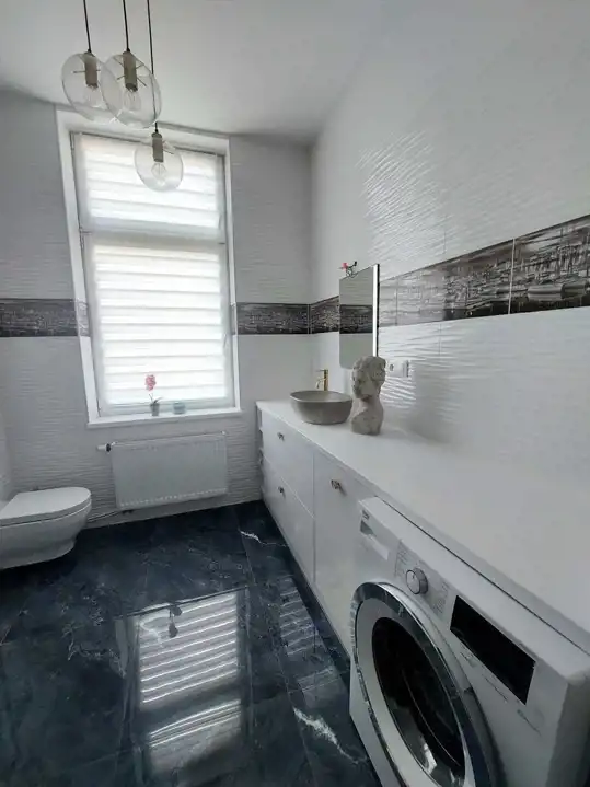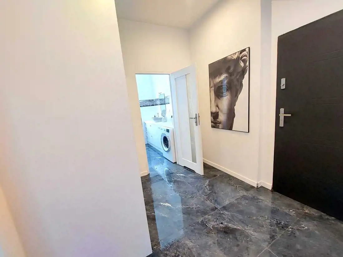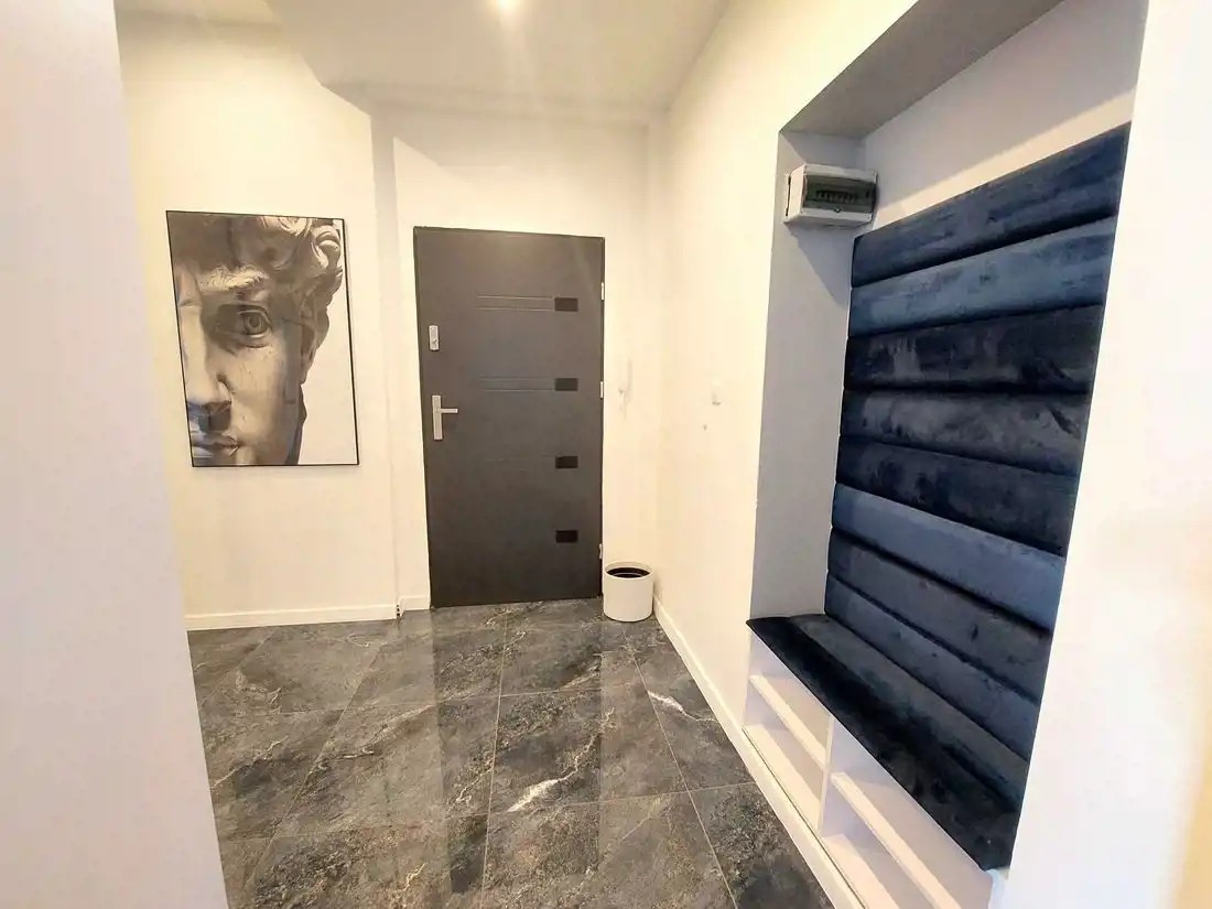 Mieszkanie zostało urządzone z dbałością o każdy detal, z wykorzystaniem wysokiej klasy materiałów oraz mebli wykonywanych na wymiar. Wnętrze jest spójne, eleganckie i gotowe do wprowadzenia bez dodatkowych nakładów finansowych.