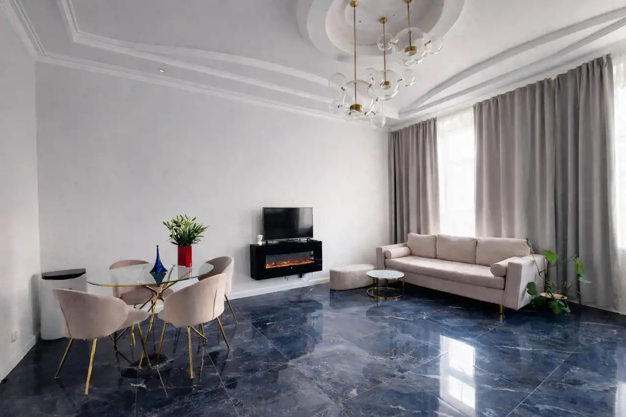 Na szczególną uwagę zasługuje przestronny salon z aneksem kuchennym, który stanowi serce mieszkania i zapewnia idealne miejsce zarówno do codziennego życia, jak i spotkań z bliskimi. Klimatu wnętrzu dodaje stylowy kominek elektryczny, a wysoki sufit 3,20 m podkreśla wyjątkowy charakter nieruchomości.