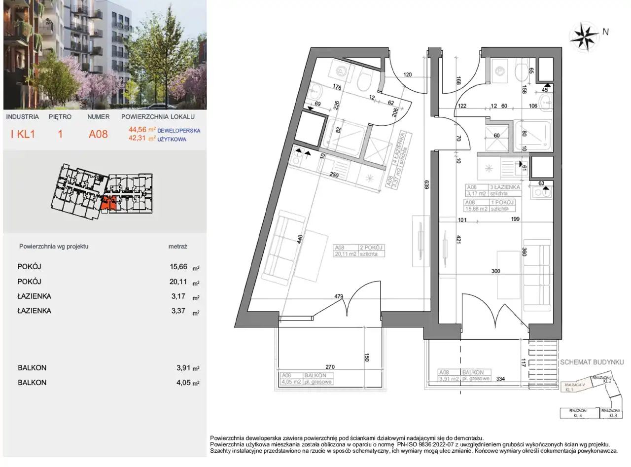 - Charakterystyka mieszkania 42.31 m2, 2 pokoje