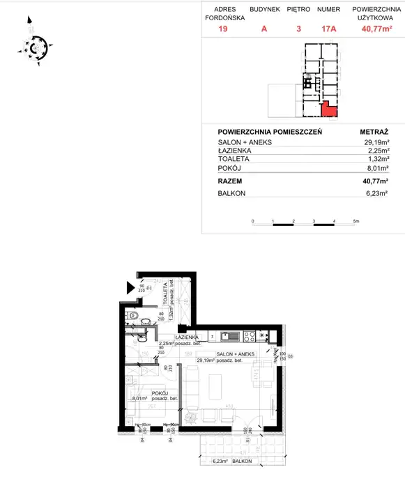 - Charakterystyka mieszkania 40.77 m2, 2 pokoje