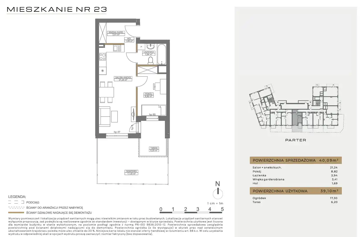 - Charakterystyka mieszkania 40.09 m2, 2 pokoje