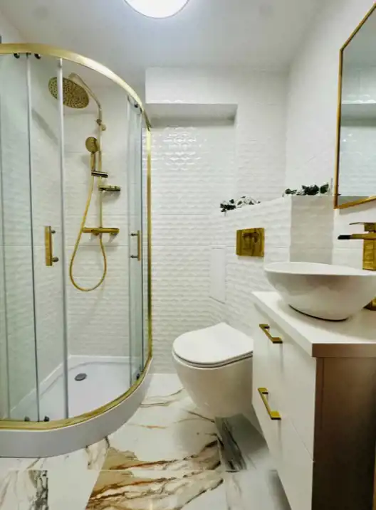 - łazienka z prysznicem i armaturą