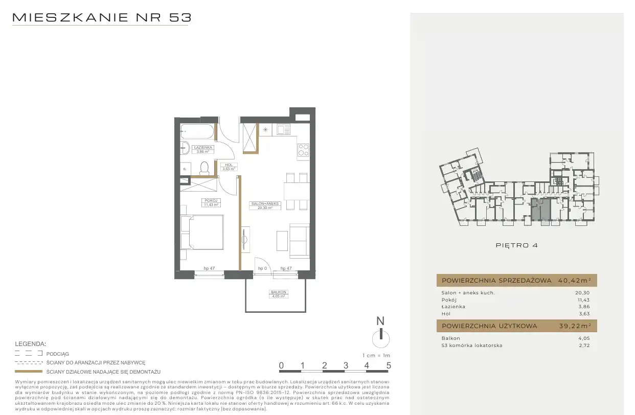 - Charakterystyka mieszkania 40.42 m2, 2 pokoje