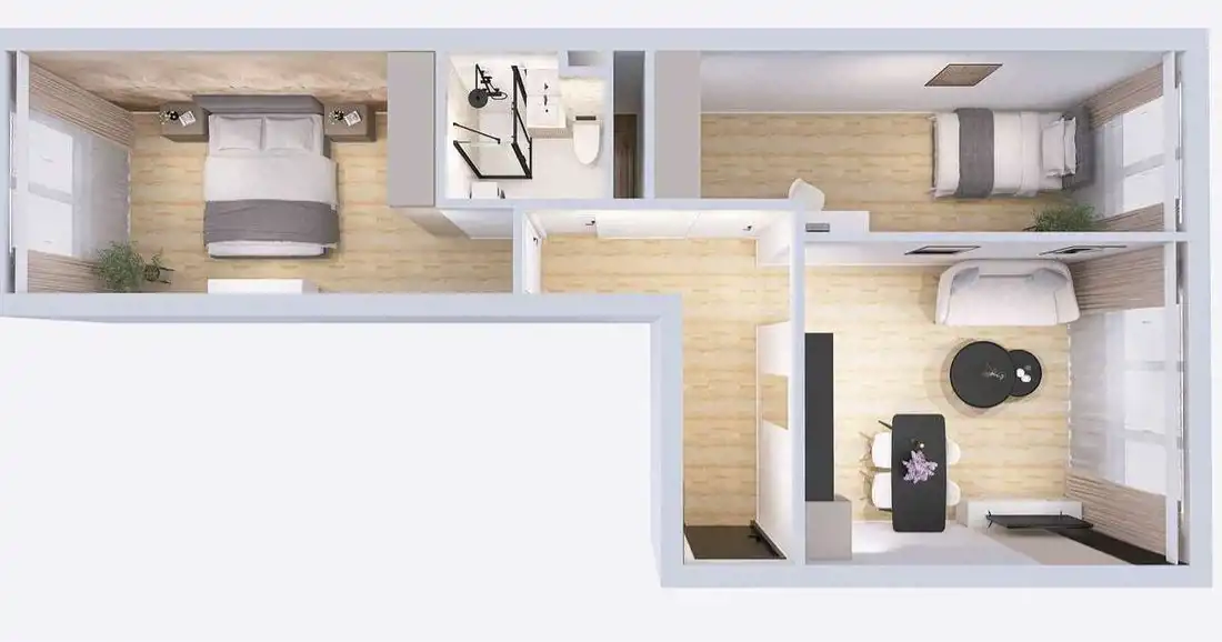 • 2 niezależne pokoje