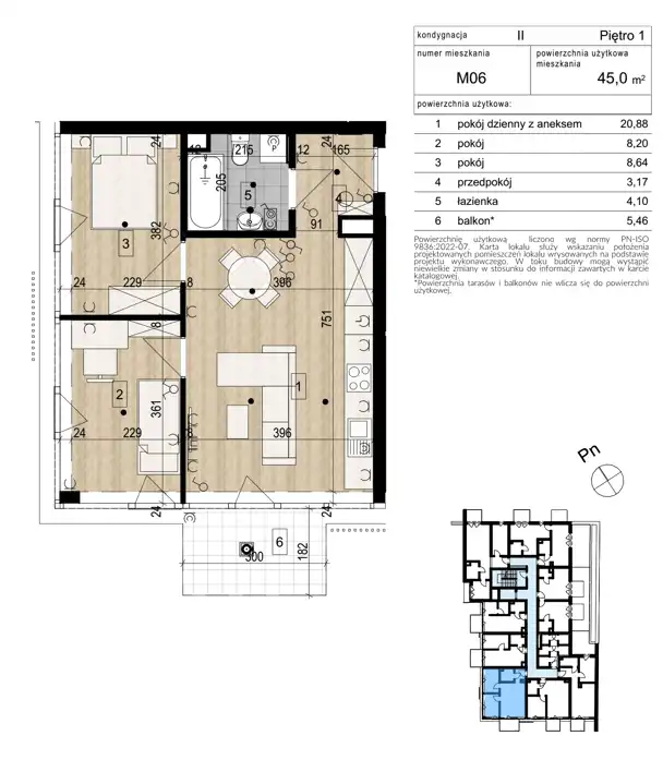 - Charakterystyka mieszkania 45 m2, 3 pokoje