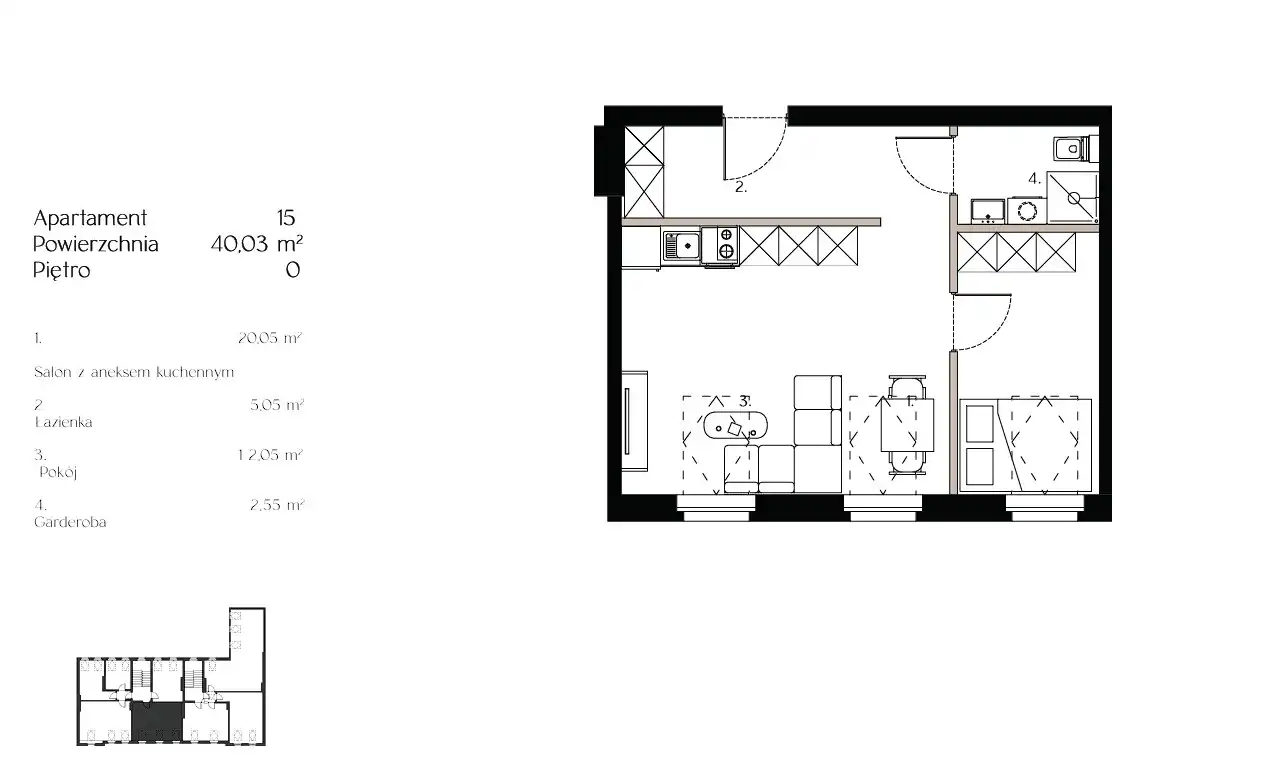 - Charakterystyka mieszkania 39.96 m2, 2 pokoje