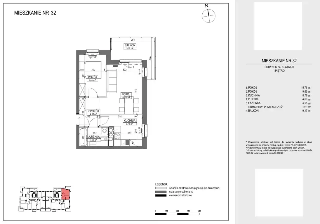 - Charakterystyka mieszkania 43.44 m2, 2 pokoje