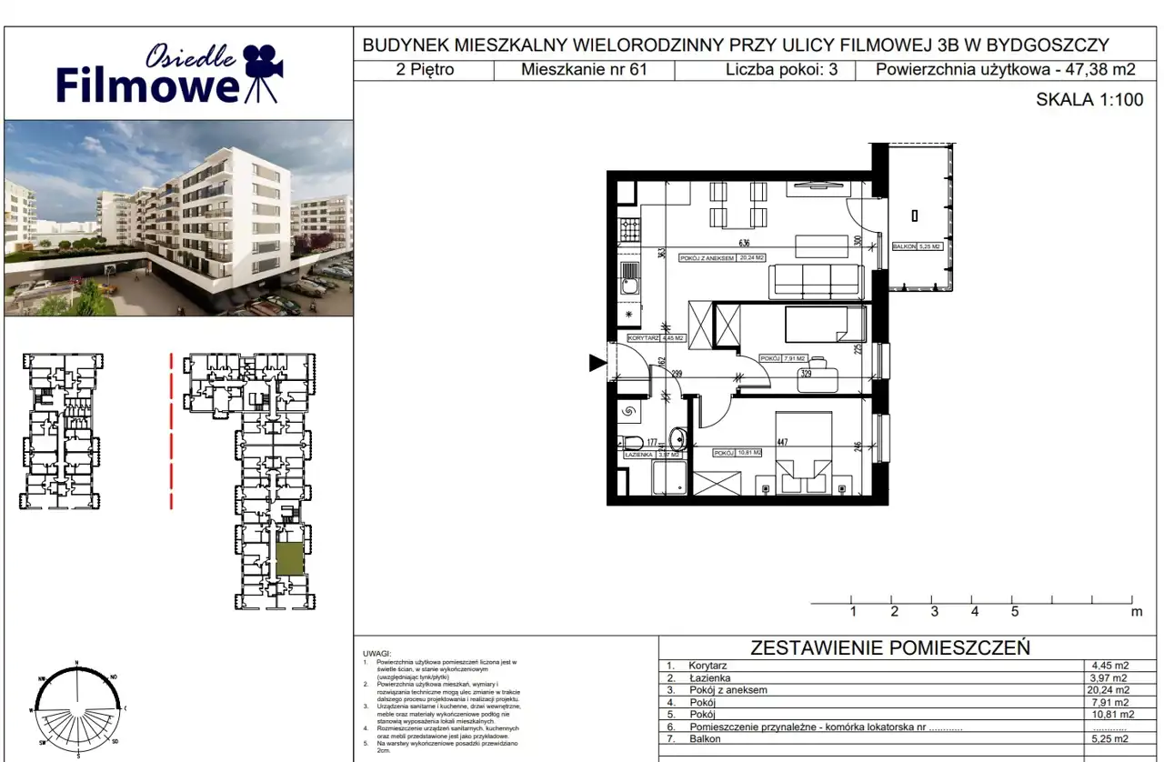 - Charakterystyka mieszkania 47.31 m2, 3 pokoje