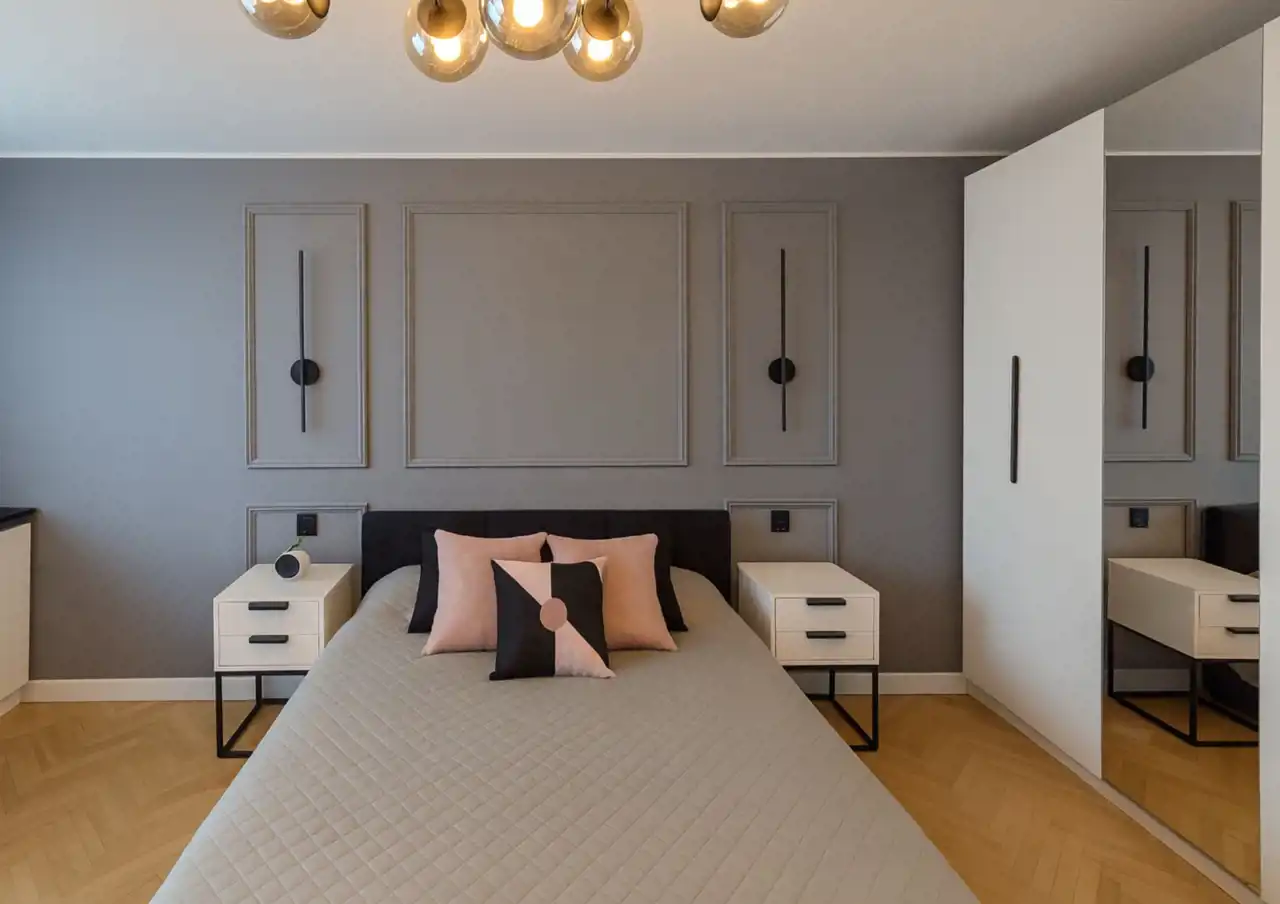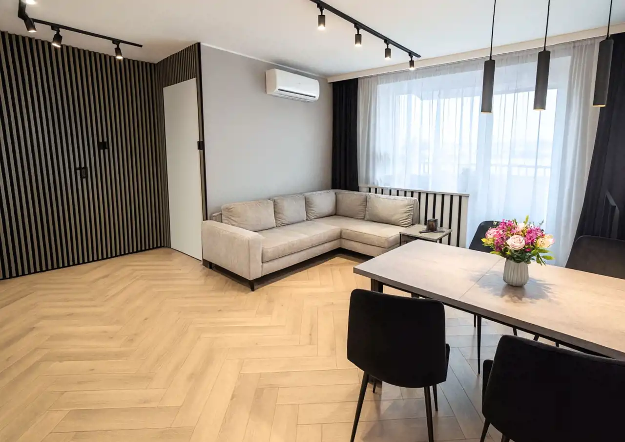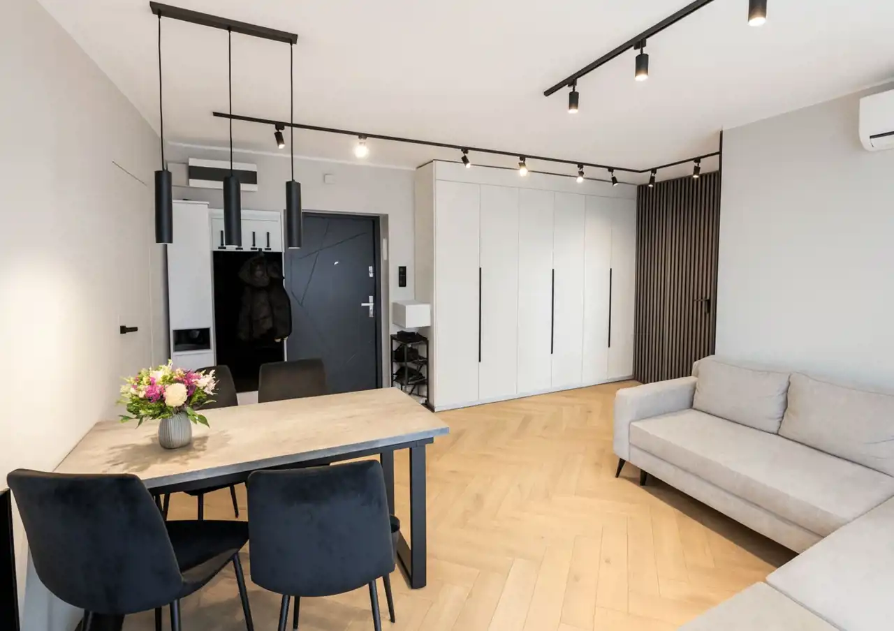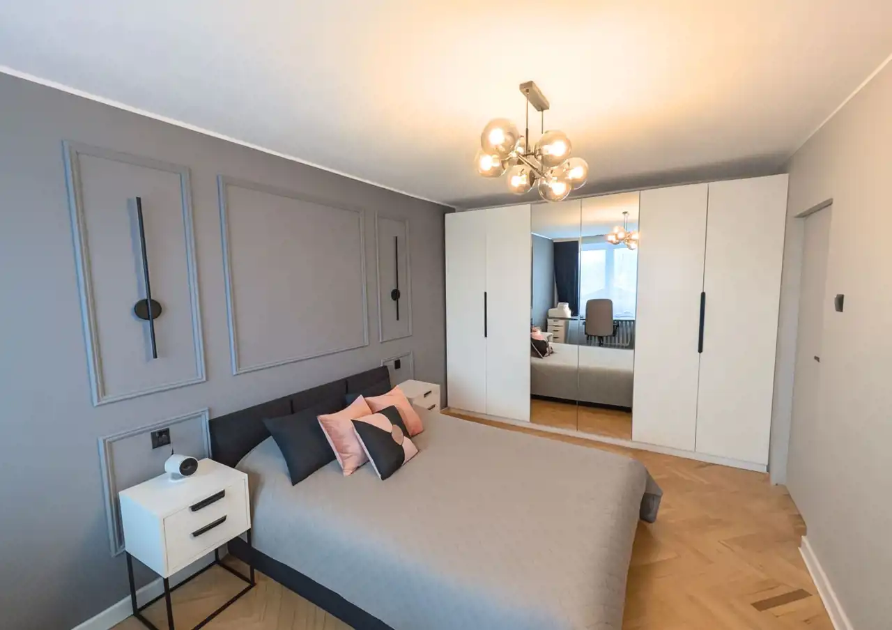 Mieszkanie przeszło kapitalny remont – wymieniono absolutnie wszystko, począwszy od instalacji, przez wykończenie, aż po wyposażenie. Wnętrze zostało zaprojektowane z dbałością o detale, a wszystkie zabudowy – w kuchni, przedpokoju, łazience oraz przy grzejniku w salonie – wykonano na wymiar, co zapewnia spójność stylistyczną oraz maksymalne wykorzystanie przestrzeni. Całość utrzymana jest w nowoczesnym, ponadczasowym charakterze.