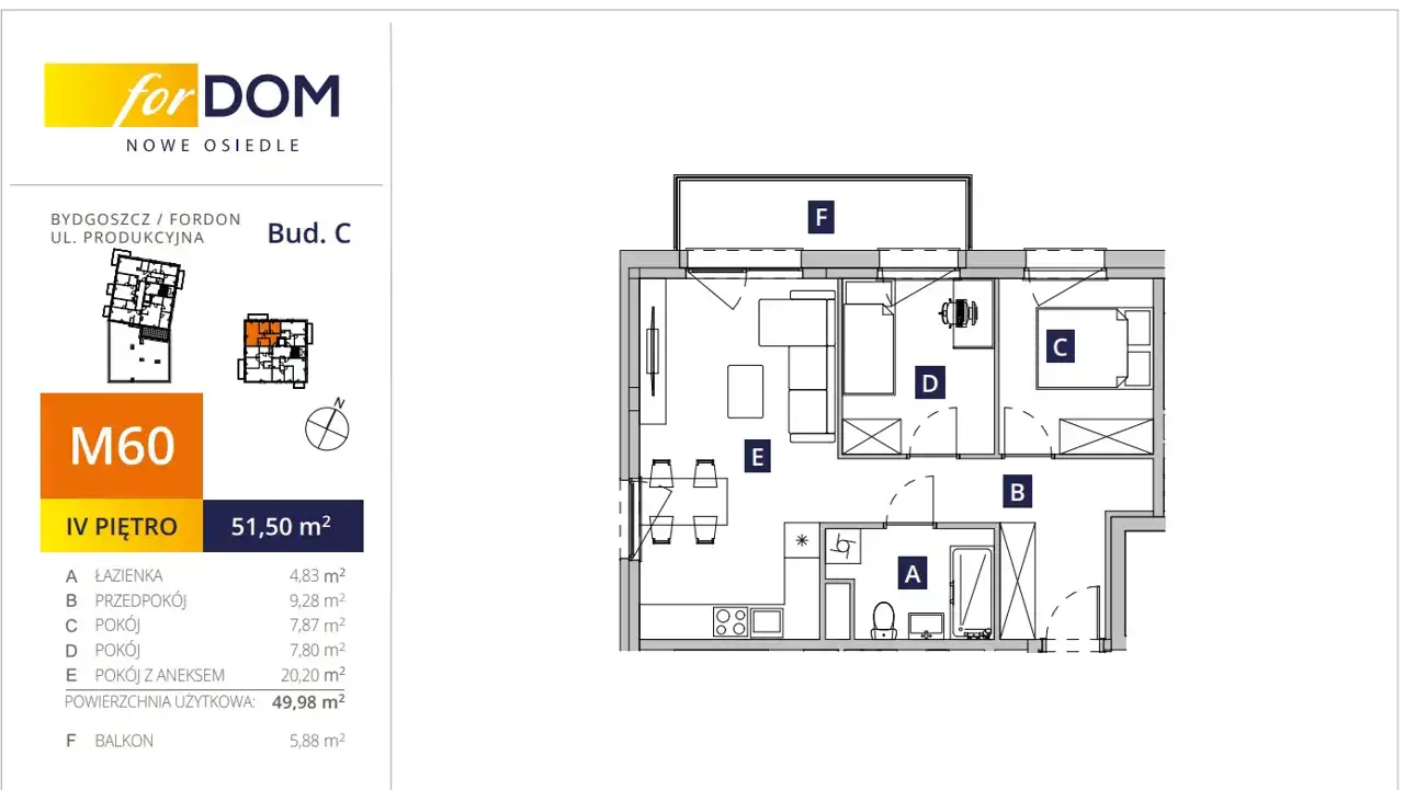 - Charakterystyka mieszkania 49.98 m2, 3 pokoje